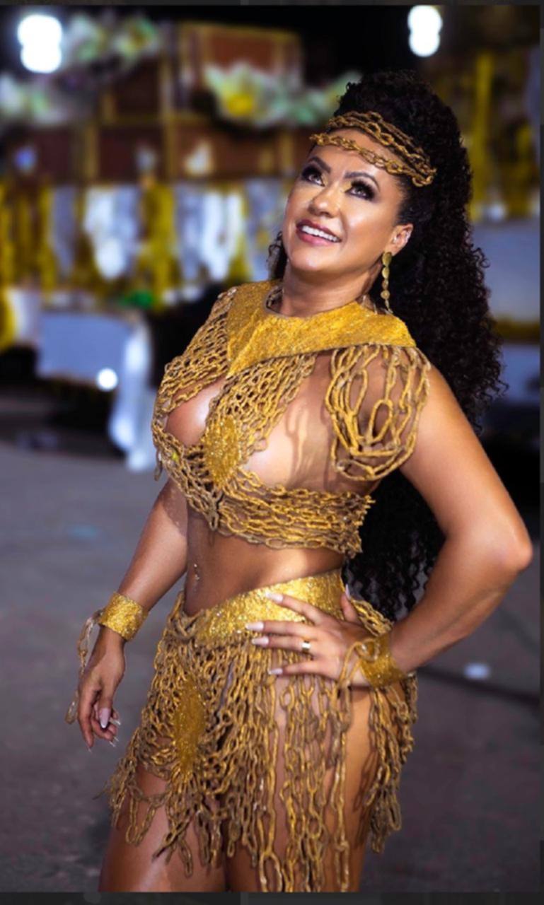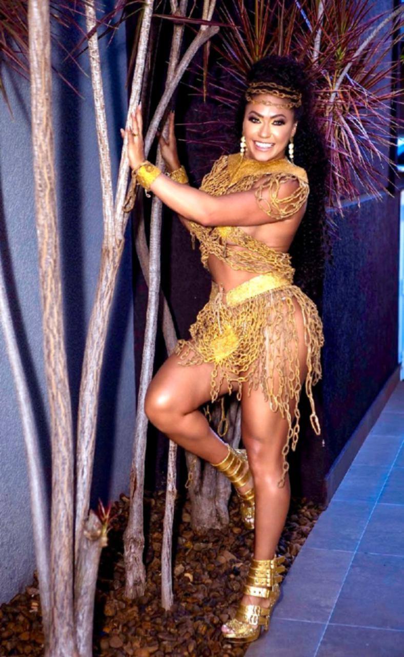 Para marcar esse momento especial, a musa realizou um ensaio fotográfico inspirado no enredo da escola para 2026, Gèlèdés – Agbara Obinrin, que exalta a força, a ancestralidade e a resistência das mulheres negras. Nas fotos, Adriana usou um look confeccionado exclusivamente em látex e barbante, com assinatura do maquiador Anderson Natio.